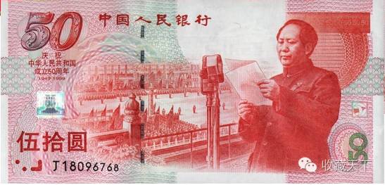 9)中国流通纪念钞 三钞王:1999年建国50周年50元纪念钞,2000年100元世纪龙钞,2008年奥运10元纪念钞。